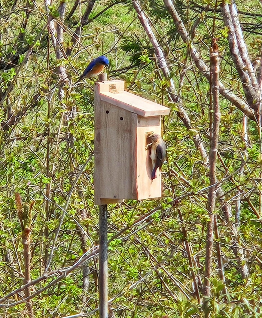 This bluebird box was only up for 25 minutes before a pair of bluebirds decided to check it out. We are hoping they find it to their liking.