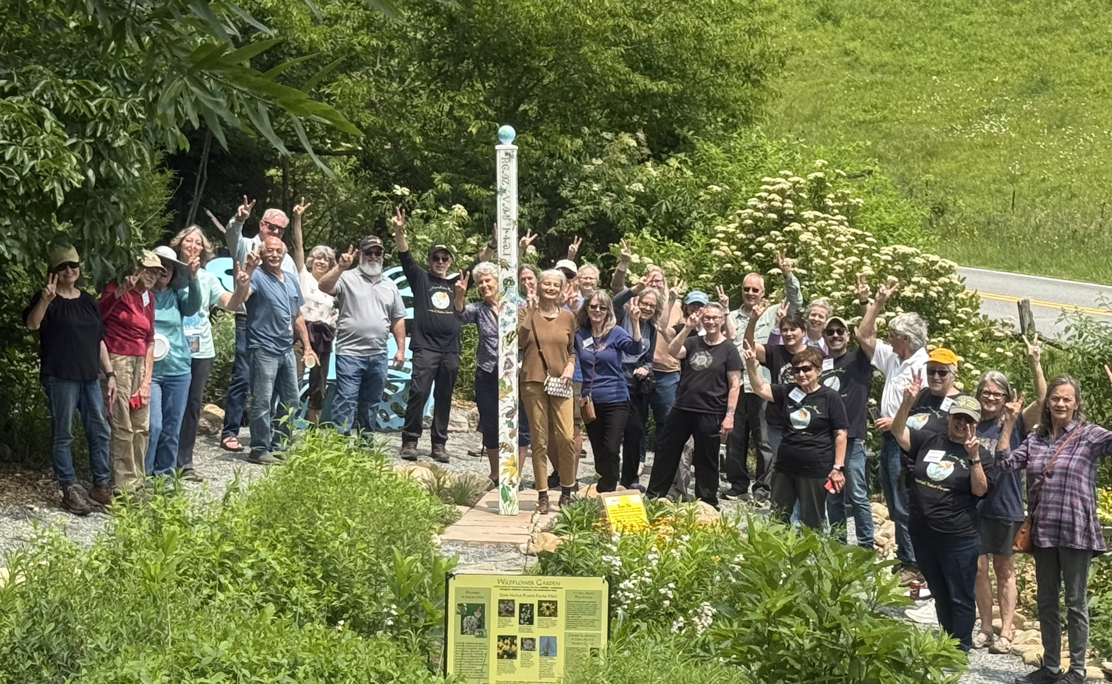 renovated Butterfly Garden. About 35 community participants celebrated with Rotary and MNGI officials leading the informal ceremonies. This is the 3rd peace pole installed in Madison County this year through coordination efforts of the Rotary Club of Madison County (i.e., one in Mars Hill, another in Hot Springs, and now the last one in Marshall). This peace pole celebration was part of a fun community event that included pollinator presentations, tours of the Native Gardens, and refreshements. And, it was a great opportunity to spend some time in the Butterfly Garden on a sunny day!