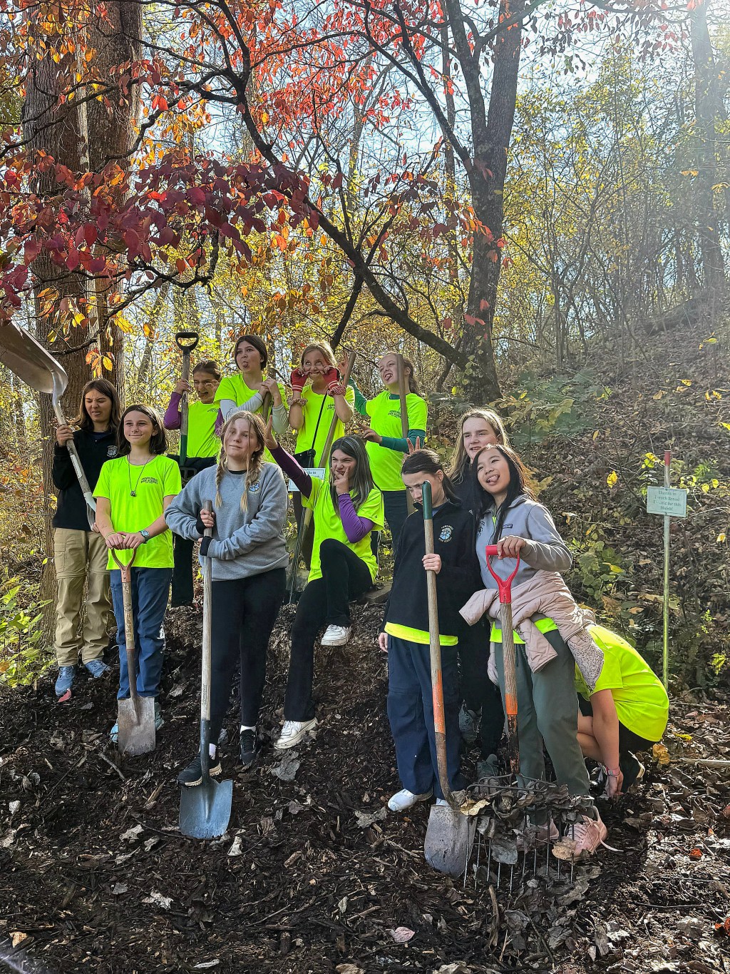 Recently a crew of 6th grade girls from FBRA were onsite to help us mulch a milkweed bed and move gravel from a parking space and relocate that gravel to our new Woodland Shade trails.