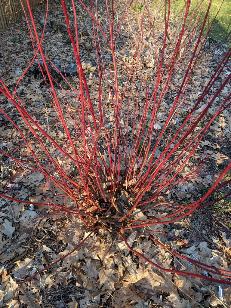 Foliage turns a bronze to purplish color in fall. After leaves are shed the plant retains its striking red twigs during winter. Young twigs have best winter color. Prune out old woody stems to rejuvenate shrub for better winter color.