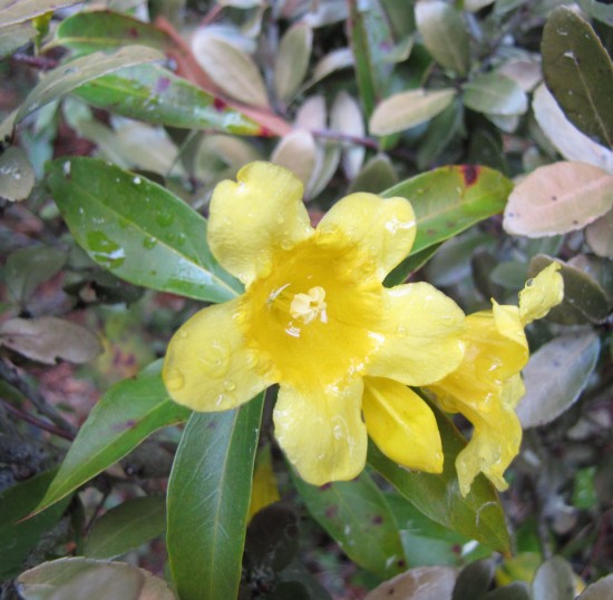 Carolina jessamine grows to 20′ or more as a vine. It can also be grown as a ground cover, maintained with a yearly cutting in late spring after flowering to 3 ft or less.